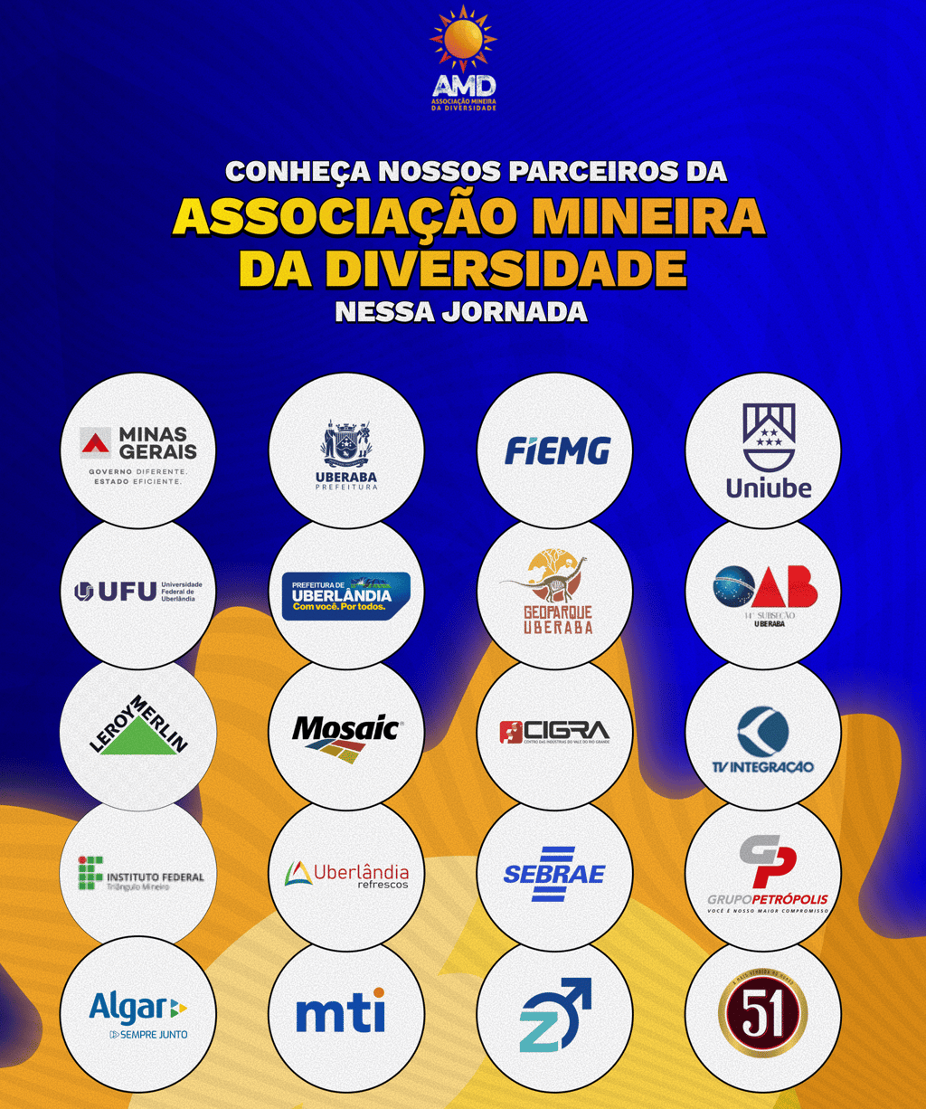 A Associação Mineira da Diversidade só existe graças à colaboração de parceiros que compartilham do nosso compromisso com a inclusão, equidade e valorização da diversidade. Cada um deles contribui para fortalecer nossas iniciativas, ampliar nosso alcance e transformar essa jornada em um impacto real para a sociedade.